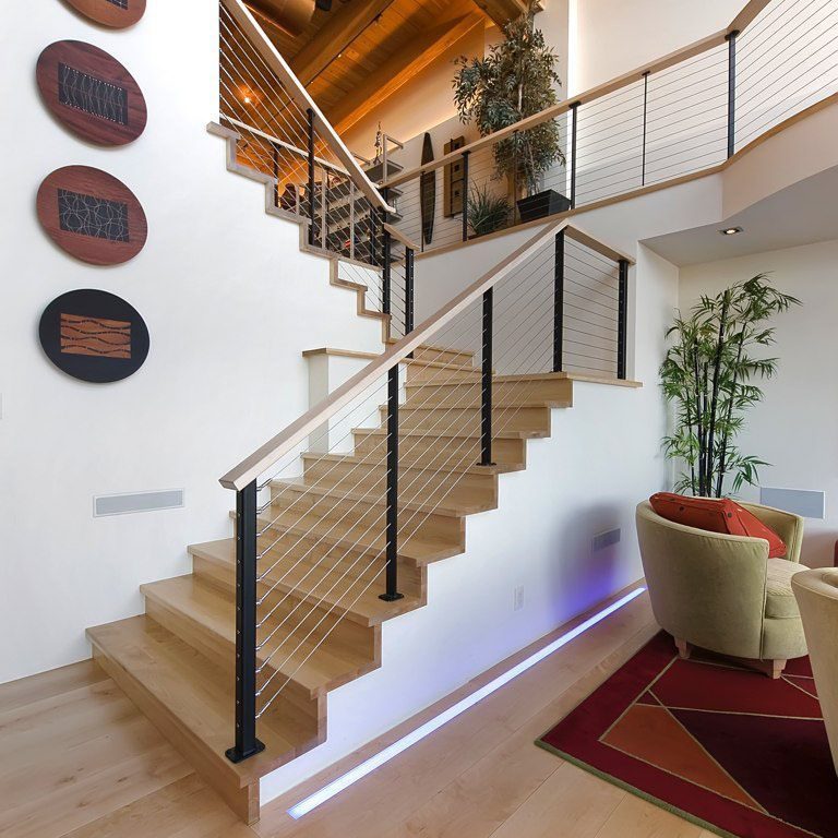 Cable Banister / Cable Railing Systems | Stainless Cable & Railing Inc. : At lowe's, we have railing options to fit your vision, including cable deck railing.. An adjustable top rail mounting plate will be utilized in stair applications. Manufactures quality exterior and interior cable railing systems distributed across north america. Find detailed installation instructions for feeney products on our technical documents page.; Ask this old house tom silva travels to utah to help a homeowner replace his traditional stair railing with more modern cable railing.#thisoldhouse #asktohsu. At lowe's, we have railing options to fit your vision, including cable deck railing.